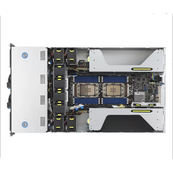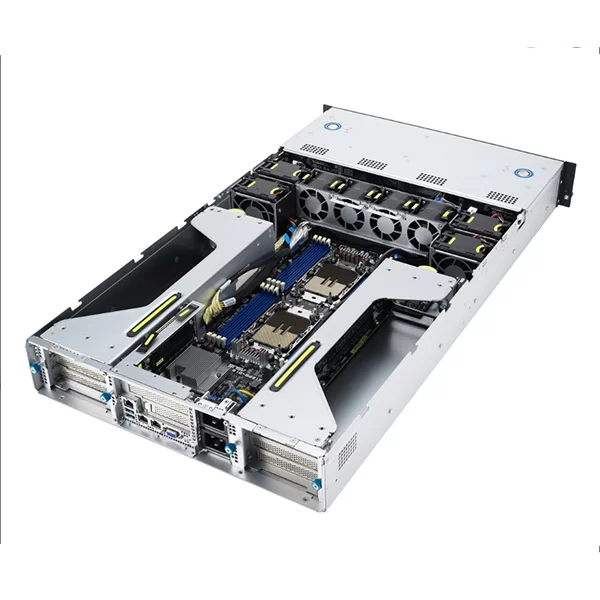 ASUS GPU ESC ESC4000-E11 2U dual-socket GPU server powered by 4th Gen Intel Xeon Scalable processors that supports four dual-slot GPUs, liquid cooling solution, 16 DIMM, six NVMe, two 2600W Titanium power supplies and ASUS ASMB11-iKVM