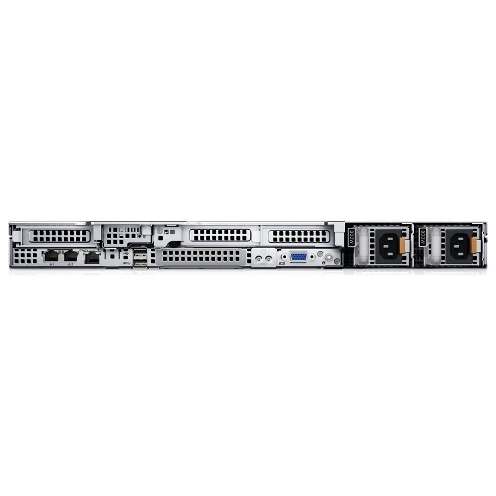 Bố cục đằng sau của Dell R650xs có hơi khác đôi chút, bộ nguồn cấp điện được để về một phía bên phải, còn Dell R650 bộ nguồn được đặt cân đối ở cả hai bên. Từ trái qua phải, chúng ta thấy có sẵn 2 cổng mạng RJ-45, nút nhận dạng hệ thống, cổng iDRAC RJ-45 chuyên dụng, một cổng USB 2.0 ở phía trên, một cổng USB 3.0 ở phía dưới, một cổng VGA. Tất cả các cổng này được gắn trực tiếp với bo mạch chủ của hệ thống.